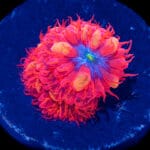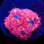 Blastomussa are an interesting stony coral because from afar they resemble mushroom corallimorphs. They are a relatively easy coral to care for with modest requirements for both flow and light. In fact, we have found they tend to do best in low light conditions. They are also easy to feed and later propagate making them a great choice for reef aquarists looking to try some of the more exotic large polyp stony corals. Please see below for additional care tips for Blastomussa.