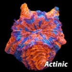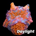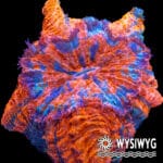 This Acanthophyllia has a bright red/teal/orange body. Like all Acanthophyllia low flow and moderate lighting should be provided for long-term health. This WYSIWYG showpiece is roughly 4″ when fully expanded.
