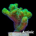 High lighting tends to bring out the best coloration in Pocillopora. We have kept them under lower light conditions and they do quite well in terms of growth and polyp extension, but under brighter lighting this coral develops brighter coloration. Pocillopora may require a longer acclimation period to intense lighting such as metal halides and LED’s.