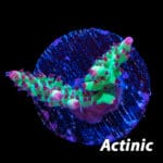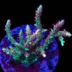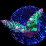 Our Strawberry Shortcake Acropora has a lime green base with pink tips and pink/red polyps. A hardy Acropora with rapid growth. Frags of this beauty are roughly 3/4″-1″.