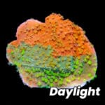 Montipora love light. Intense lighting is recommended for best coloration and overall health. Use either Metal Halide lighting, a large bank of high output fluorescent or LED’s. If not provided proper lighting, the colors of Montipora may fade. Like other SPS such as Acropora, Montipora can change colors dramatically depending on the type of light provided. Expect some changes in color when moving Montipora from system to system.